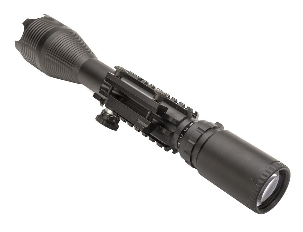 Metal sniper scope with adjustable zoom and illuminated crosshairs. The built in mount makes it easy to mount and sight in on any rifle with a standard picatinny rail.