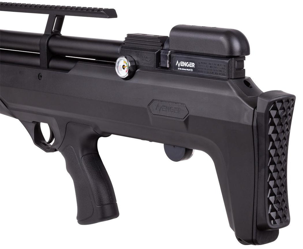 This is a high-performance air rifle that delivers accuracy, versatility, and durability in a compact and lightweight package. With a maximum velocity of 1000 FPS and 22 FPE of power in .177 caliber, the Avenger Bullpup provides the performance needed for target shooting or small game hunting.