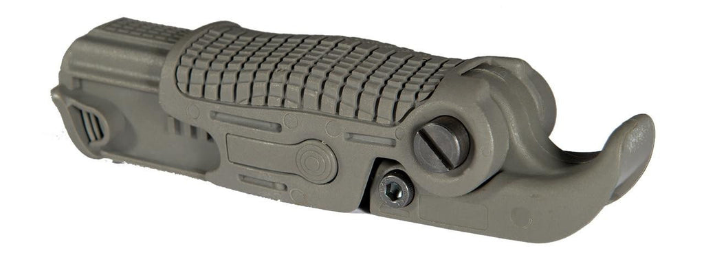 The AB163 style foregrip is arguably one of the most versatile foregrips on the market. Commonly found on many AK rifles due to their limited lower rail space but compatible with any picatinny/weaver rail, this compact grip can be quickly and easily folded from the stored position to the lowered stick-style grip configuration. Furthermore, the ergonomic grip can be used in either the compact position or extended for a full hand grip. The front of the grip has a hooked end the curves over the pointer finger for a more solid, stable, and comfortable grip.