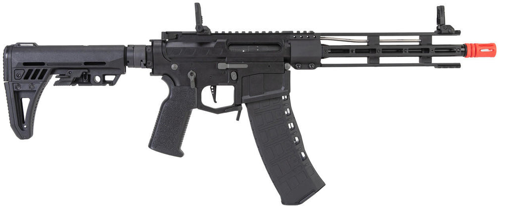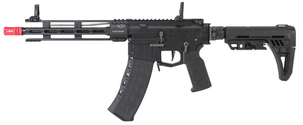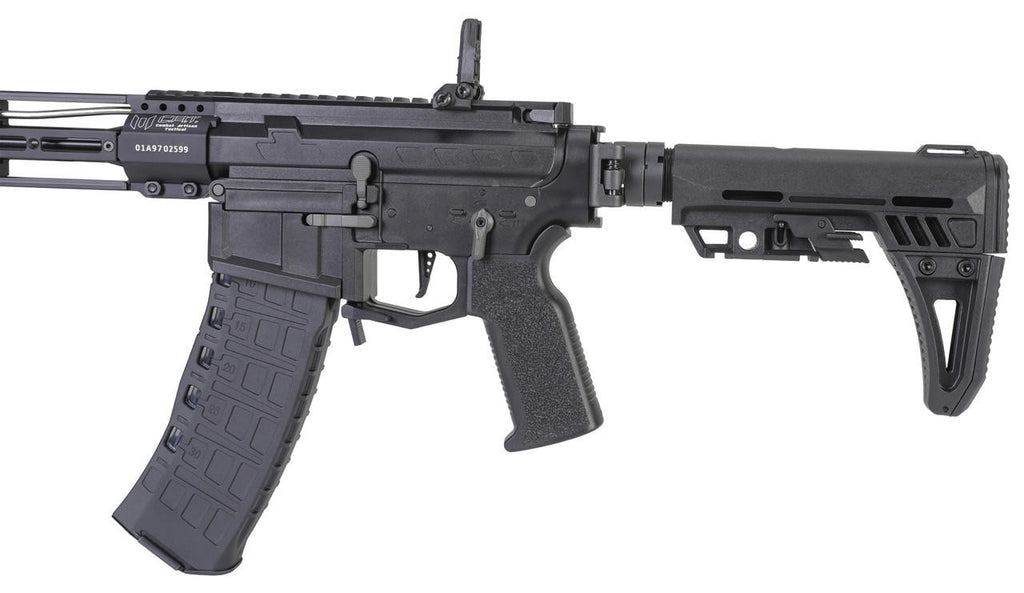 Measuring 815 / 730 mm in overall length and weighing 2300 g, this rifle offers a balanced and ergonomic design suitable for various combat scenarios. The 10 Inch M-LOK Aluminum handguard provides ample space for accessory attachment, while the collapsible and multi-purpose stock system offers versatility and comfort during extended gameplay sessions.