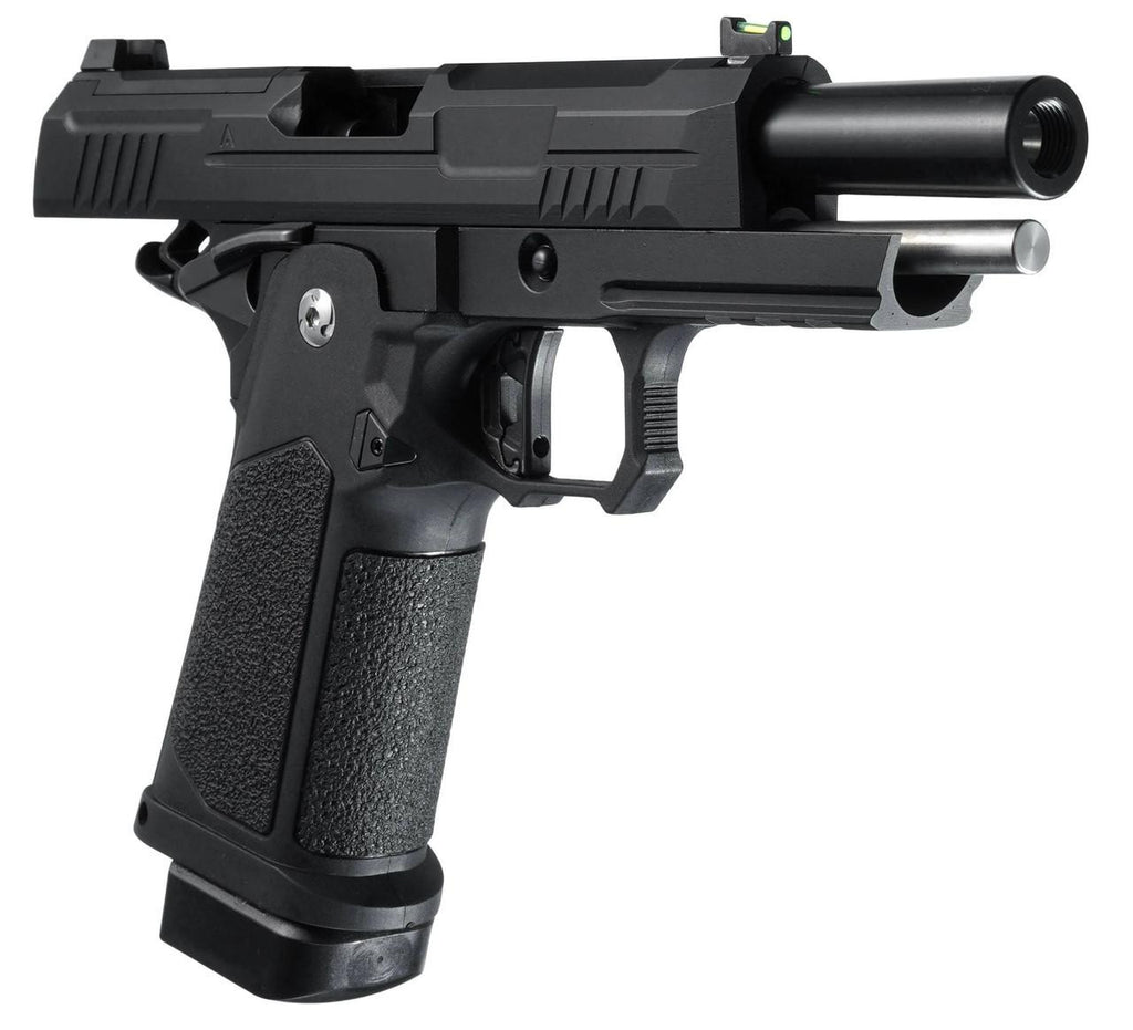 Built with high-quality MIM steel and reinforced nylon fiber, this airsoft pistol provides superior durability and performance in an incredibly light, agile package. The optics-ready slide is designed for players who want to install red dot sights for quick target acquisition.