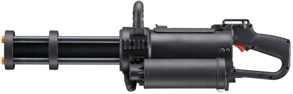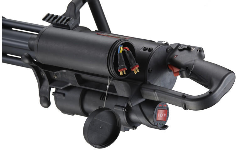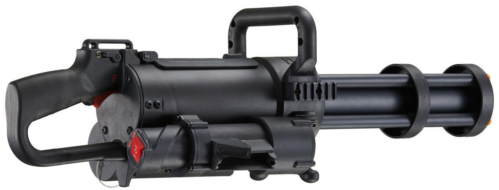 - Features six rotating Gatling barrels, firing at up to 350 FPS at a rapid 3000 RPM