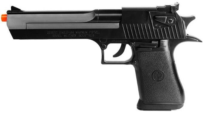 The Desert Eagle is one of the most iconic pistols of all time and Cybergun brings the officially licensed spring-powered Airsoft version to market. Hand-cocked, this spring pistol fires at 260 FPS with 0.12g BBs. Built from ABS plastic, this affordable airsoft sidearm can compliment any kit or as a centerpiece to a roleplayer. It's drop-free magazine can be easily loaded by hand or with a speed loader.