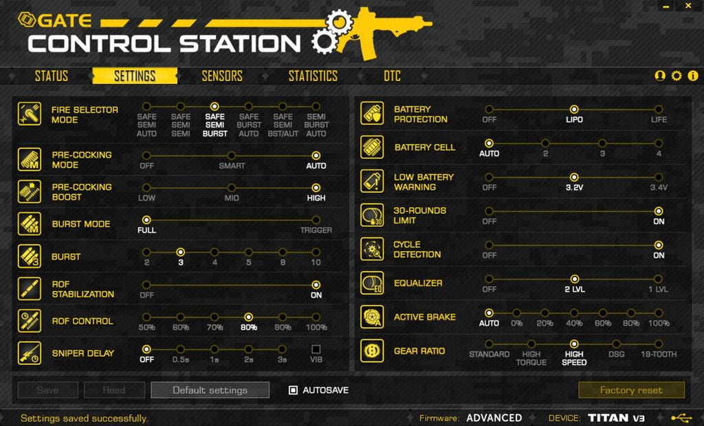 The TITAN V2 is an AEG Control System for Version 2 gearboxes which completely transform your airsoft gun into an advanced training weapon. The Basic Firmware edition is a more economic version with limited number of functions, dedicated for those who prefer simplicity while still requiring the highest quality. If you wish to have all of the available possible functions, the switch to the Advanced module may be for you. This upgrade kit gives players the option to adjust their AEG for specific preference, using the USB-Link (NOT INCLUDED) and GATE Control Station App for PC, smartphones, and tablets. The TITAN V2 enables players to adjust the trigger sensitivity between 250 possible settings to get the perfect feel and greatly improves overall realism. TITAN gives you the option to adjust things like fire selector mode, burst mode, burst, battery protection, battery cell, low battery warning, 30-round limit, cycle detection, active brake, and gear ratio. The eight integrated sensors ensure you are given the most accurate and useful information available. The TITAN V2 Basic Module is the first and only MOSFET that can get the newest firmware updates via the internet, which means your one time purchase will be regularly updated with upgrades. Gain an unmatchable tactical advantage and bring new life into your AEG with this TITAN V2 Basic Module.