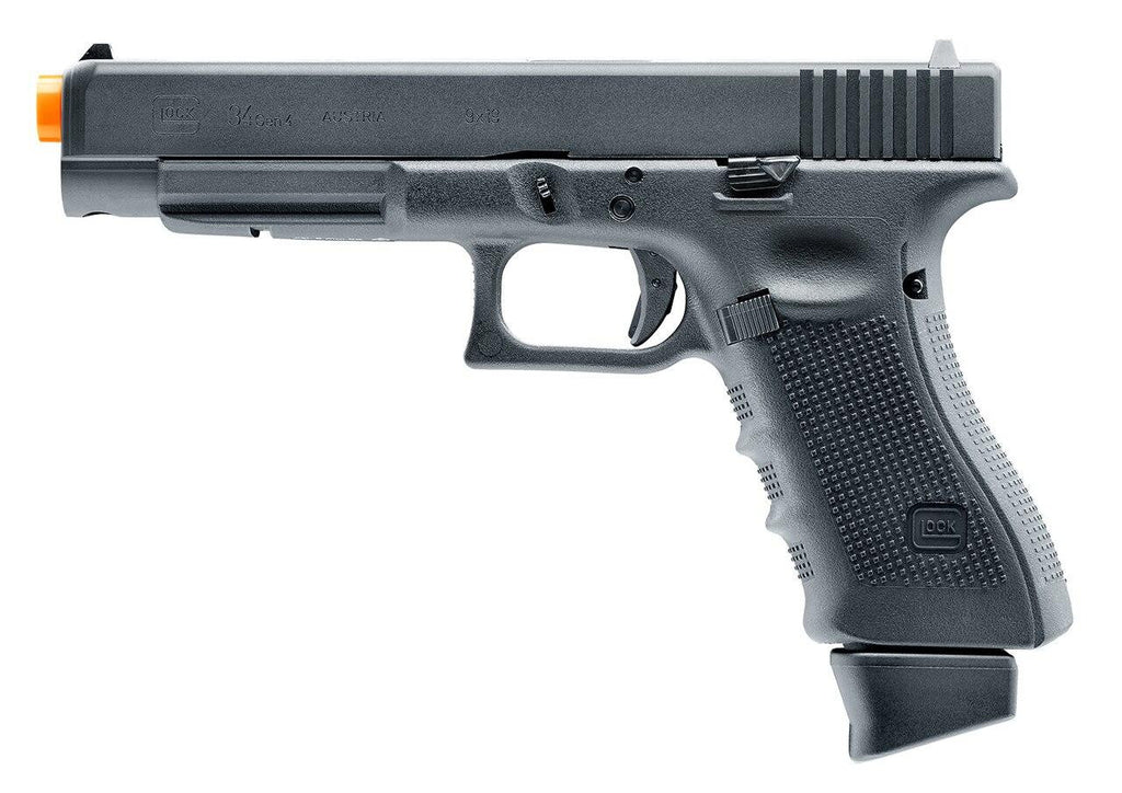 The specially designed ergonomic grip offers a comfortable platform while reducing player fatigue from long battles, you also have the option to switch out the grip for your personal preference. A single 12g Co2 cartridge operates this Glock G34, and is housed in the 20rd full metal magazine. Like the actual Glock G34, the VFC Glock G34 has a full metal slide and is the perfect addition for any gun enthusiast or those looking for a reliable practice or target pistol. This Glock G34 replica comes with a full sized metal magazine and has the same weight and dimensions as real Glock G34s. VFC includes an authentic hard plastic Glock carrying case to safely transport your G34 when not in use. Utilize the adjustable hop-up system to account for various target range and wind conditions. The semi-auto design allows you to fire as fast as you can pull the trigger, with no delay or having to manually cock back the slide between each shot. This is a great pistol for those looking for a reliable versatile sidearm that packs a serious punch.