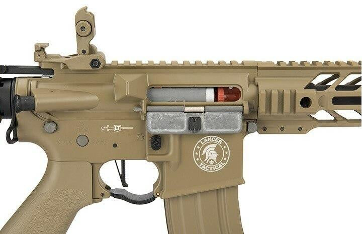 The BATTLE HAWK rifle features Lancer Tactical's 2nd Generation Version 2 Gearboxes with full metal parts, which can be easily upgraded or modified to user preference. The unique design of this rifle allows it to carry two magazines at the same time, and Lancer Tactical even includes an additional 70 round magazine that fits perfectly into the magwell stock. These gearboxes come out swinging with an upgraded high-torque 25K motor and ball bearing spring guide to withstand high amounts of stress from every gearbox cycle. The integrated Quick Spring Change System gives you the option to easily adjust the rifle velocity by adding different springs. Low resistance wiring is used throughout this whole rifle, to greatly increase smooth electrical flow from the battery. Use the adjustable rotary style hop-up to account for range and wind conditions, making sure no enemy is safe! Run onto the battlefield confident you have what it takes to come out on top, thanks to this new and improved AEG from Lancer Tactical.