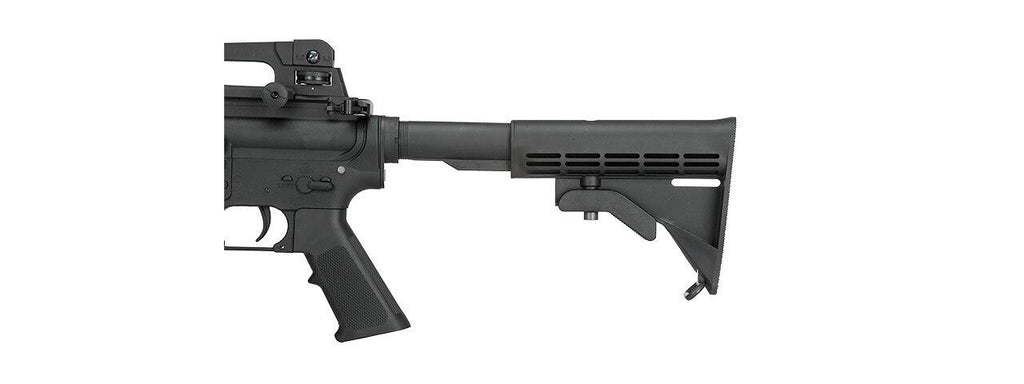 - Retractable stock adjustable to multiple positions for shooter comfort